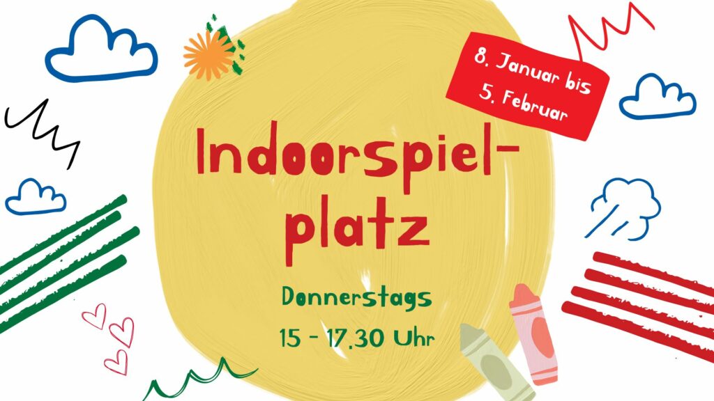 Jeden Donnerstag bis zum 5. Februar gibt es den Indoorspielplatz im Erdgeschoss. Hier gibt es genug Raum zum Spielen, zum Reden und zur Begegnung für Familien mit kleinen Kindern bis 6 Jahre. Der Indoorspielplatz ist von 15 bis 17.30 Uhr geöffnet. Ein Buffet mit Kaffee, Tee und süßen Snacks stehen für ein Kaffeetrinken auf Spendenbasis bereit.
